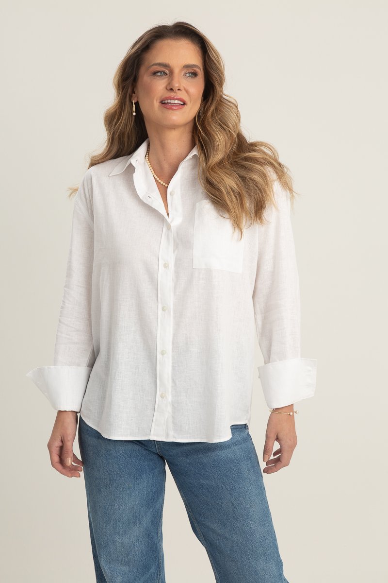 Confeccionada em linho e viscose, a camisa ampla traduz leveza e elegância com um toque descomplicado — perfeita para todas as estações.